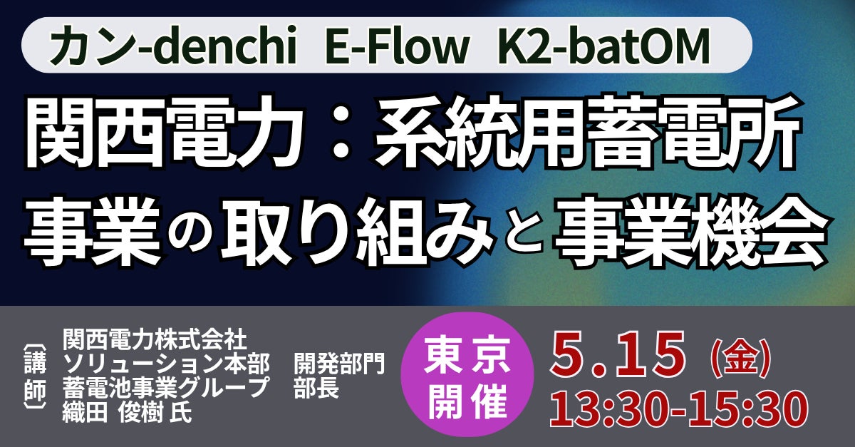 【JPIセミナー】関西電力(株)「系統用蓄電所事業の取り組みと事業機会」5月15日(金)<東京開催>