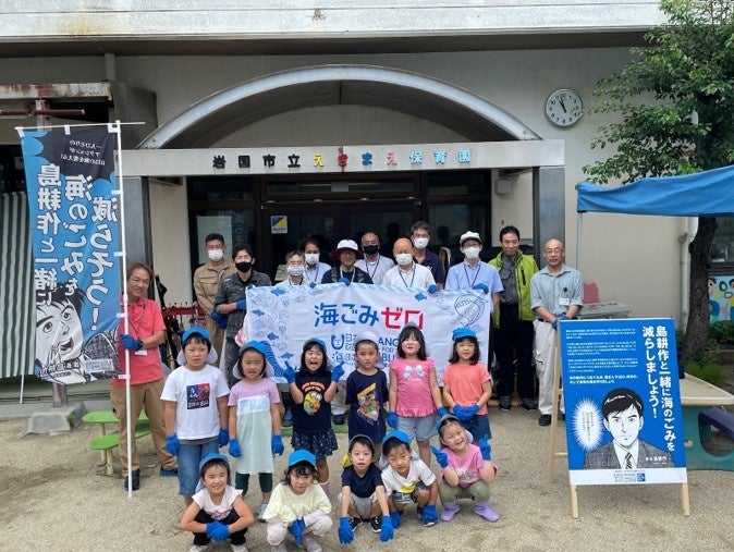 マンガキャラクターで海洋ごみゼロを目指して!園児と一緒にごみ拾い!一般社団法人 山口・海ごみゼロ維新プロジェクト~山口の美しい海を守ろう!~「島耕作啓発バス出発式」を開催しました!