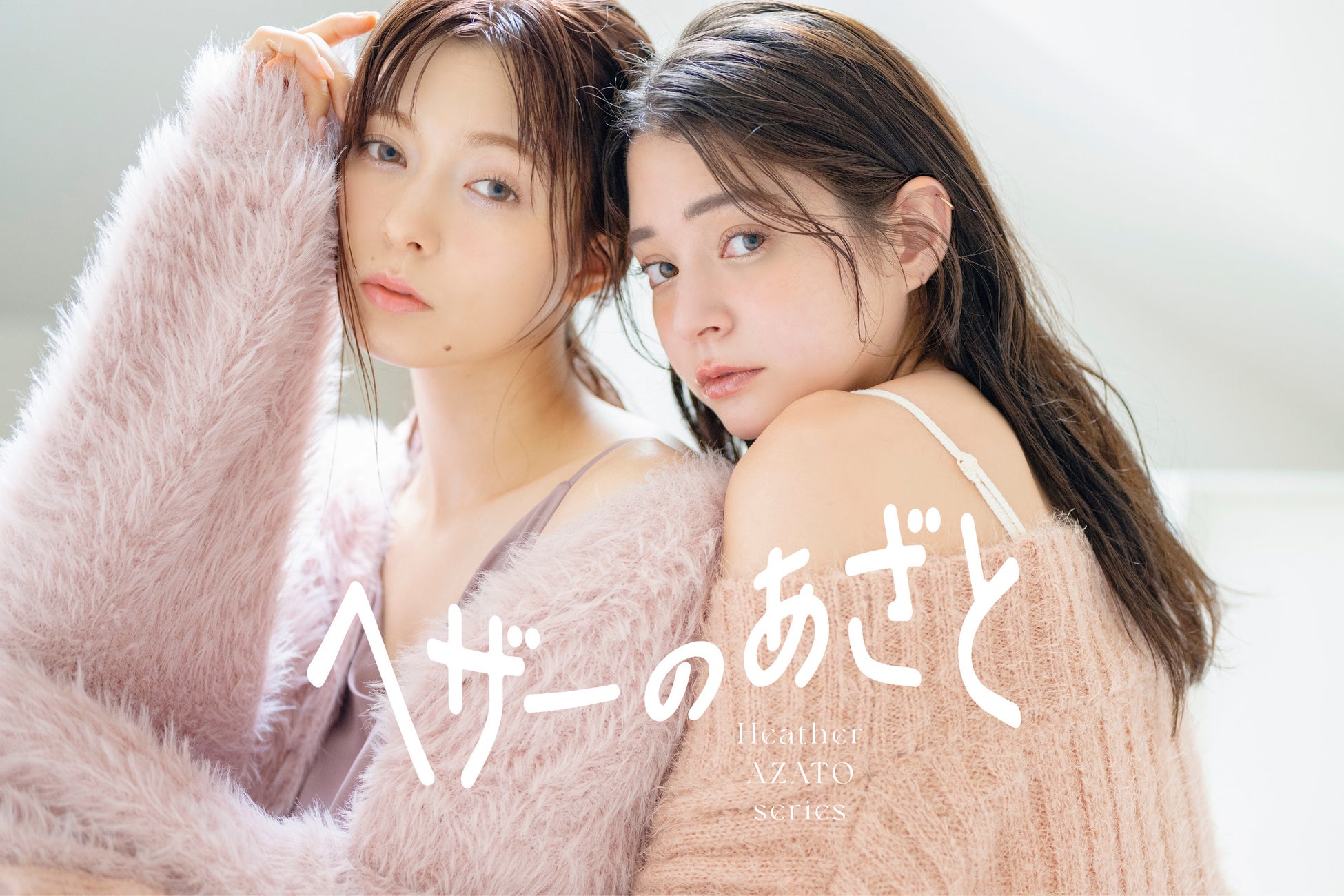 キービジュアルでは八木アリサさん、瑛茉ジャスミンさんがAZATOシリーズを着用し、程よい肌見せを取り入れたコーディネートで“ヘザーのあざと”を表現しています。