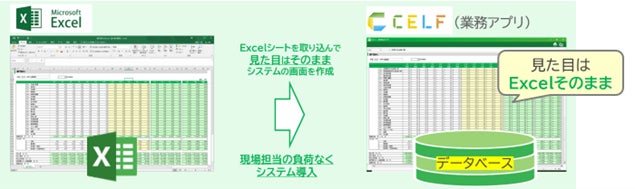 SCSKが開発した「CELF」は、Excelに似た操作性およびインターフェースで業務アプリを作成、利用できるノーコード開発ツールで、国内外で約1,300社以上の導入実績があります。予算実績管理や見積・案件管理、マスター管理など現場に密着した業務で高い効果が発揮でき、リレーショナルな形式のデータベースによりデータの蓄積や利活用、他システムへの連携などにも対応しています。