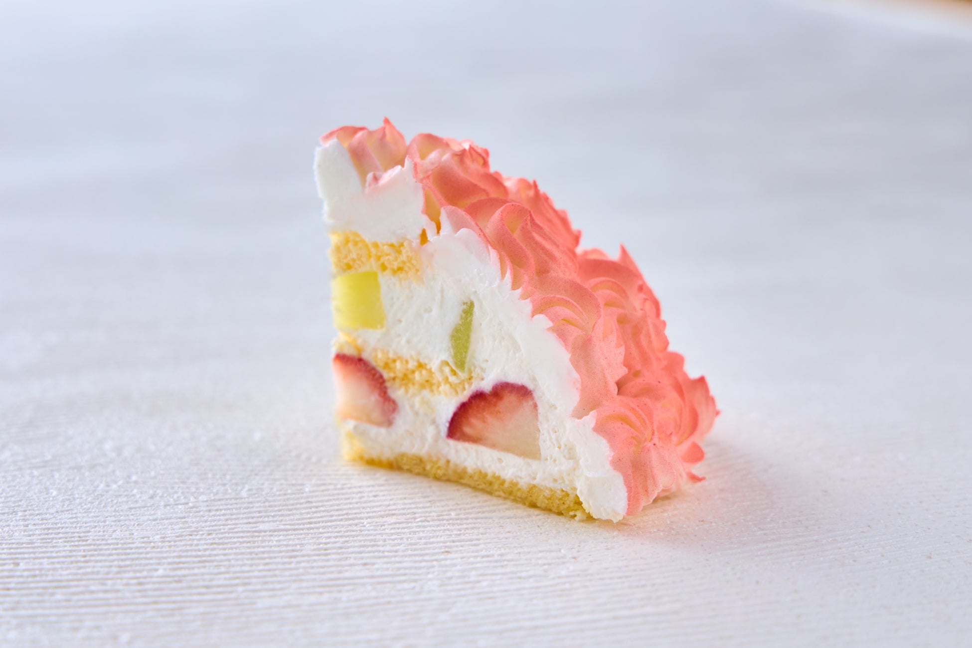 キルシュ酒のシロップを染み込ませたきめ細やかなスポンジに、北海道産の濃厚な生クリームを使用し、独自にブレンドした、口どけの良い風味豊かなクリームシャンティと苺、メロンをぜいたくにサンドしました。トップにはエディブルフラワーやリボン型のチョコレート、さらに苺・ブルーベリー・フランボワーズ・パパイヤを彩りよく飾り、チョコレートスプレーでコーティングしたクリームでトピアリーをイメージした華やかなデザインに仕上げています。目にも美しい、特別なひとときを演出するケーキをぜひお楽しみください。