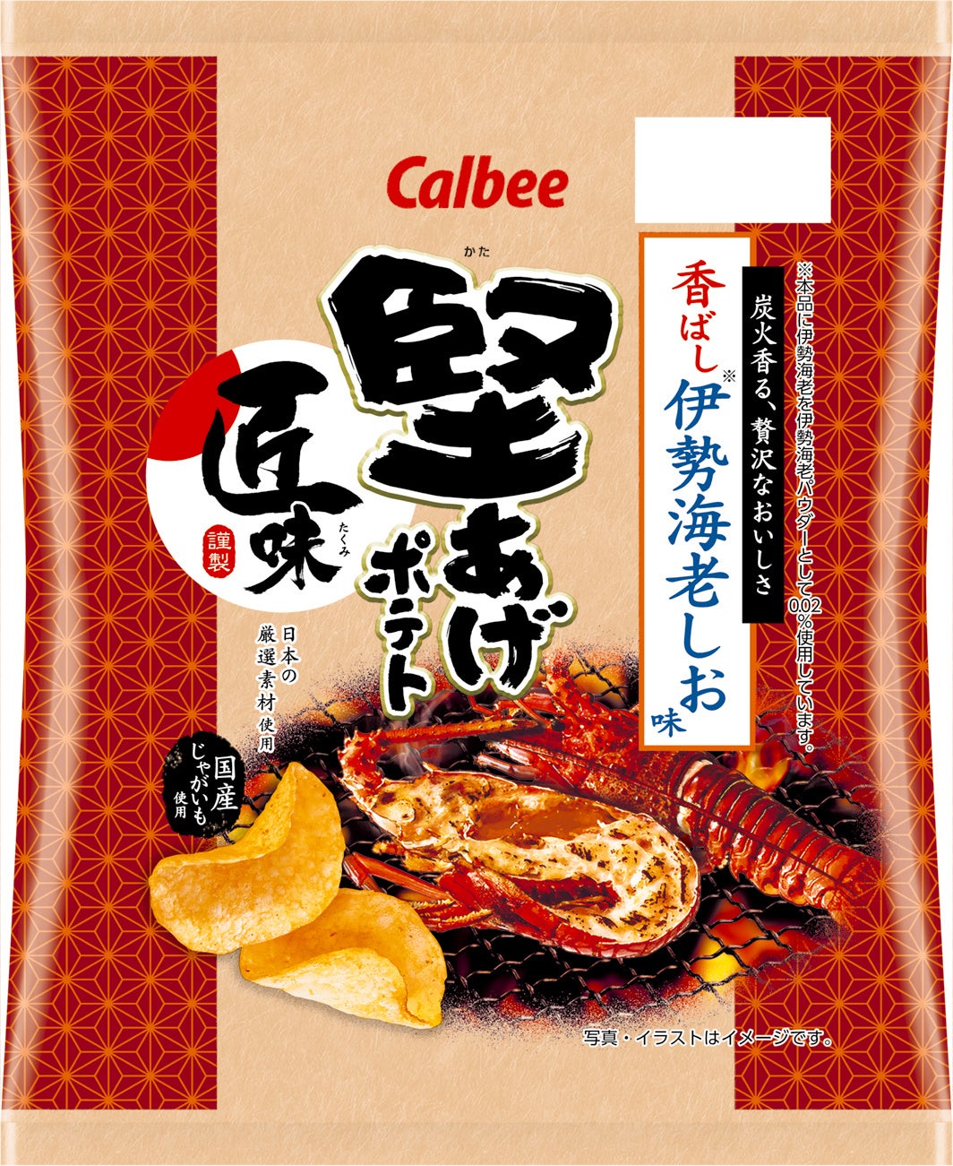 秋冬に旬を迎える伊勢海老※の贅沢なおいしさが楽しめる新商品が登場!炭火で焼いたような香りが食欲を引き立てる『堅あげポテト匠味(たくみ) 香ばし伊勢海老しお味』