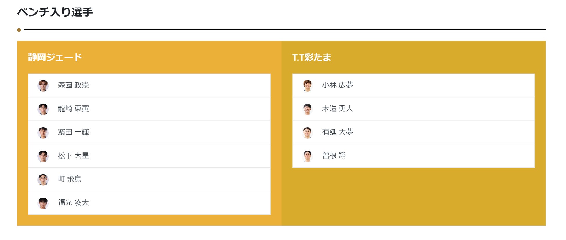 ノジマTリーグ 2024-2025シーズン 公式戦 11月3日開催 静岡ジェード vs T.T彩たま ベンチ入り選手発表