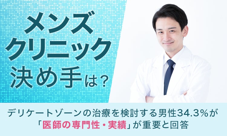 【メンズクリニック決め手は?】デリケートゾーンの治療を検討する男性34.3%が「医師の専門性・実績」が重要と回答