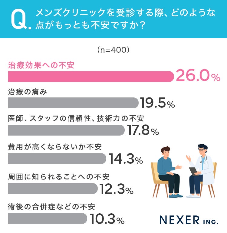 ■メンズクリニックを受診する際の不安、「治療効果への不安」が最多