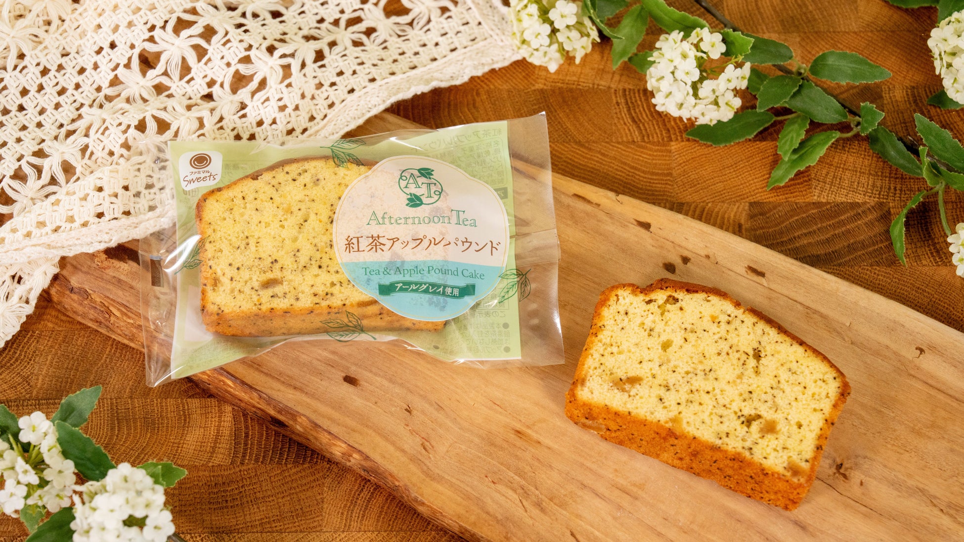 【内容】アールグレイ茶葉とりんごの美味しい出会いが楽しめるパウンドケーキです。