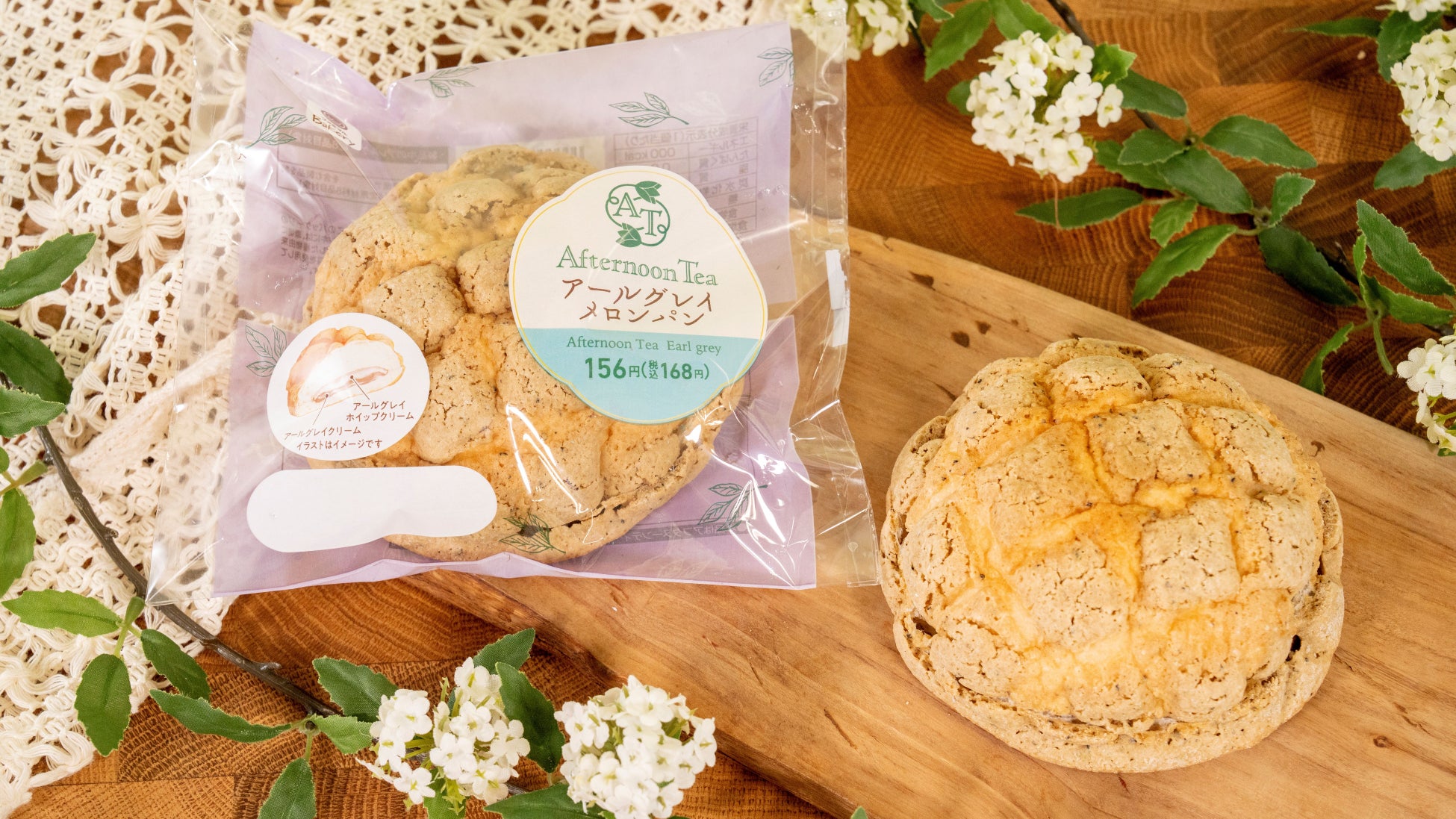 【内容】紅茶の茶葉入りビスケット生地と2層のアールグレイクリームの豊かな味わいが楽しめるメロンパンです。