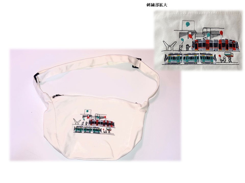広島駅開業をお祝いしている風景をデザインしたショルダーバッグです。