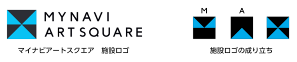 施設ロゴは、そのマイナビとアートが介在する<スクエア>の場が、アーティストや企業、来場者が出会う交差点としてイメージされるよう、デザインされています。