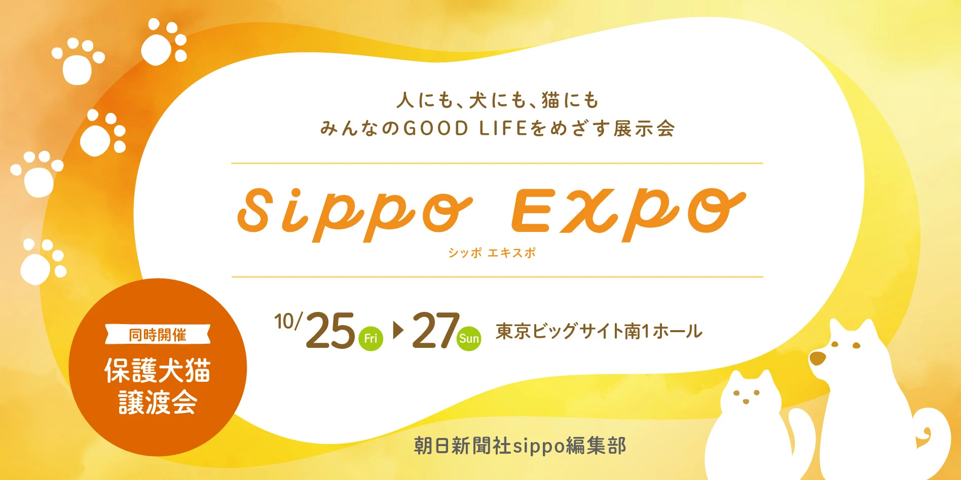 株式会社朝日新聞社(代表取締役社長:角田克)の犬猫情報サイト「sippo」は、保護犬猫の譲渡会や、新しい家族が見つかった元保護犬猫の「今」を紹介する写真展などさまざまな企画を盛り込んだ「sippo EXPO」を10月25~27日、東京・有明の東京ビッグサイトで初開催します。同期間に開かれる「GOOD LIFE フェア2024」(朝日新聞社主催)の一環。譲渡会は事前予約制で参加無料。協賛ブースもあります。