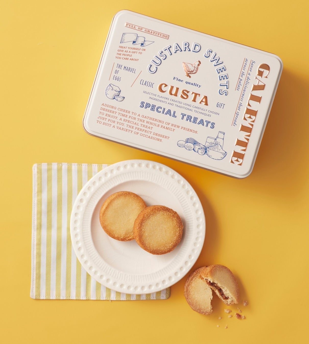 たまごの風味豊かなクッキーでキャラメルフィリングを包み込み、さっくりホロホロ食感に仕上げました。
