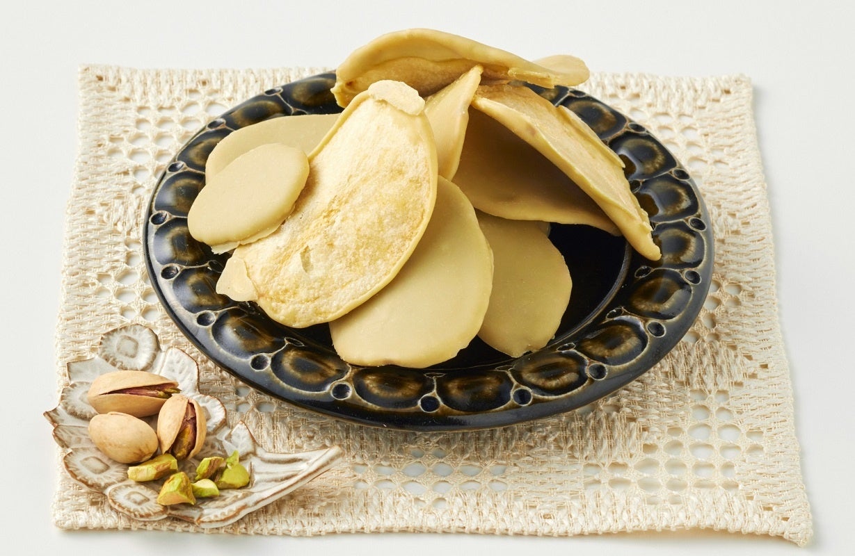 ザクザク食感のポテトチップスに、濃厚なピスタチオチョコレートをかけた甘じょっぱさがたまらない!