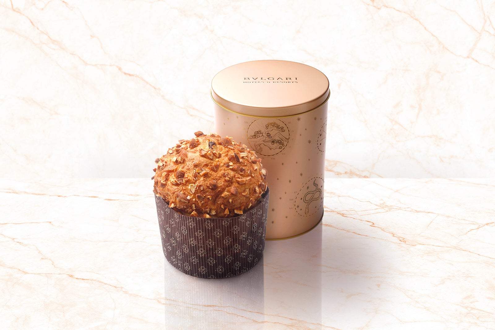 また、ブルガリ ドルチよりイタリアのフェスティブシーズンの定番菓子、パネットーネが登場いたします。ブルガリ ドルチのパン職人が改良を重ねて作った自家製酵母のちからでゆっくりと発酵・熟成させた深く、風味豊かな生地が特徴です。イタリア産のドライフルーツやレーズン、手作りのバニラシュガーを組み合わせ、すりおろしたオレンジ、レモン、ライムの皮が芳醇な香りを放ちます。