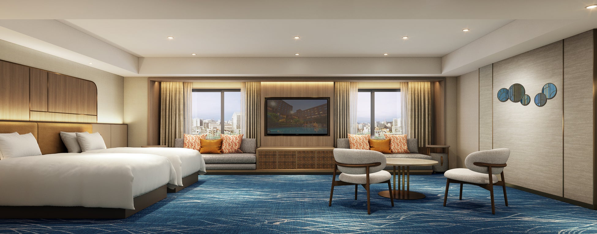 今回リニューアルを迎えるのは、クラシカルモダンなデザインと快適性を兼ね備えた2タイプの客室、そして、沖縄の今を“食”で味わうことをテーマにした新しいダイニング。