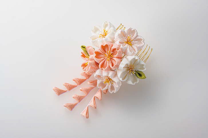 《四条通祇園》◇かづら清老舗/正絹ちりめん 六輪桜コーム ぶら下がり付き
