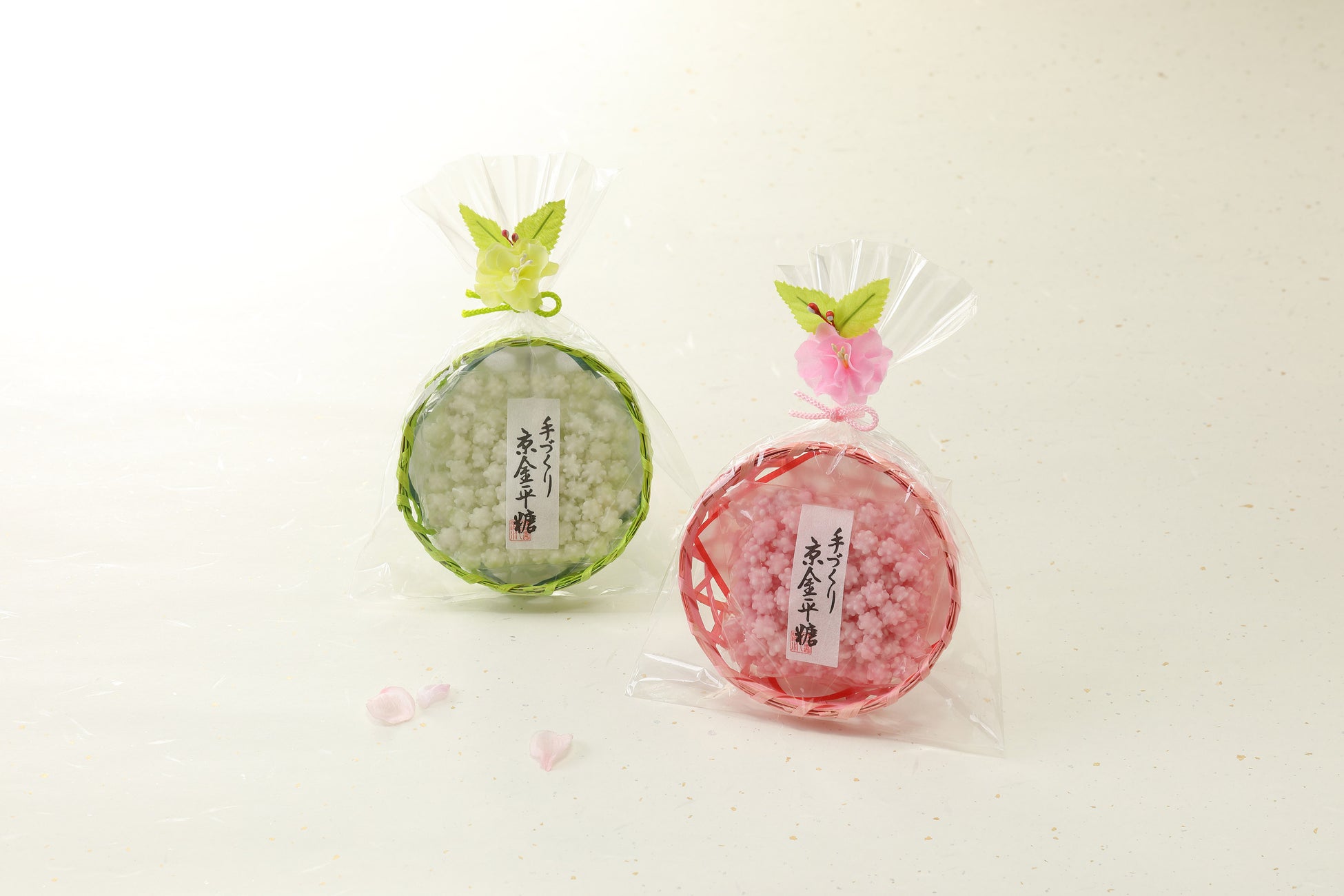 《百万遍/季節限定品》◇緑寿庵清水/桜の金平糖・緑衣黄桜の金平糖(篭入、各1袋)