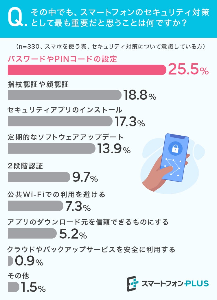 その中でも、スマートフォンのセキュリティ対策として最も重要だと思うことは何か聞いてみました。