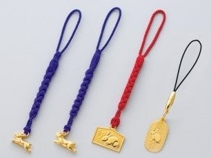 (左から)K18根付「卯」小 税込58,300円、K18根付「卯」大 税込68,200円、K18絵馬根付「卯」 税込73,700円、純金製 小判型ストラップ「卯」 税込97,900円