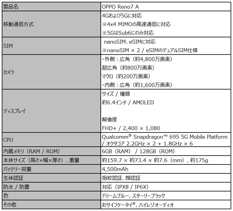 ■「OPPO Reno7 A」製品紹介ページ