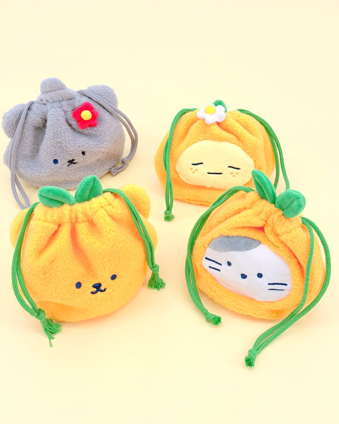 ●フェイス巾着ポーチ 各2,090円