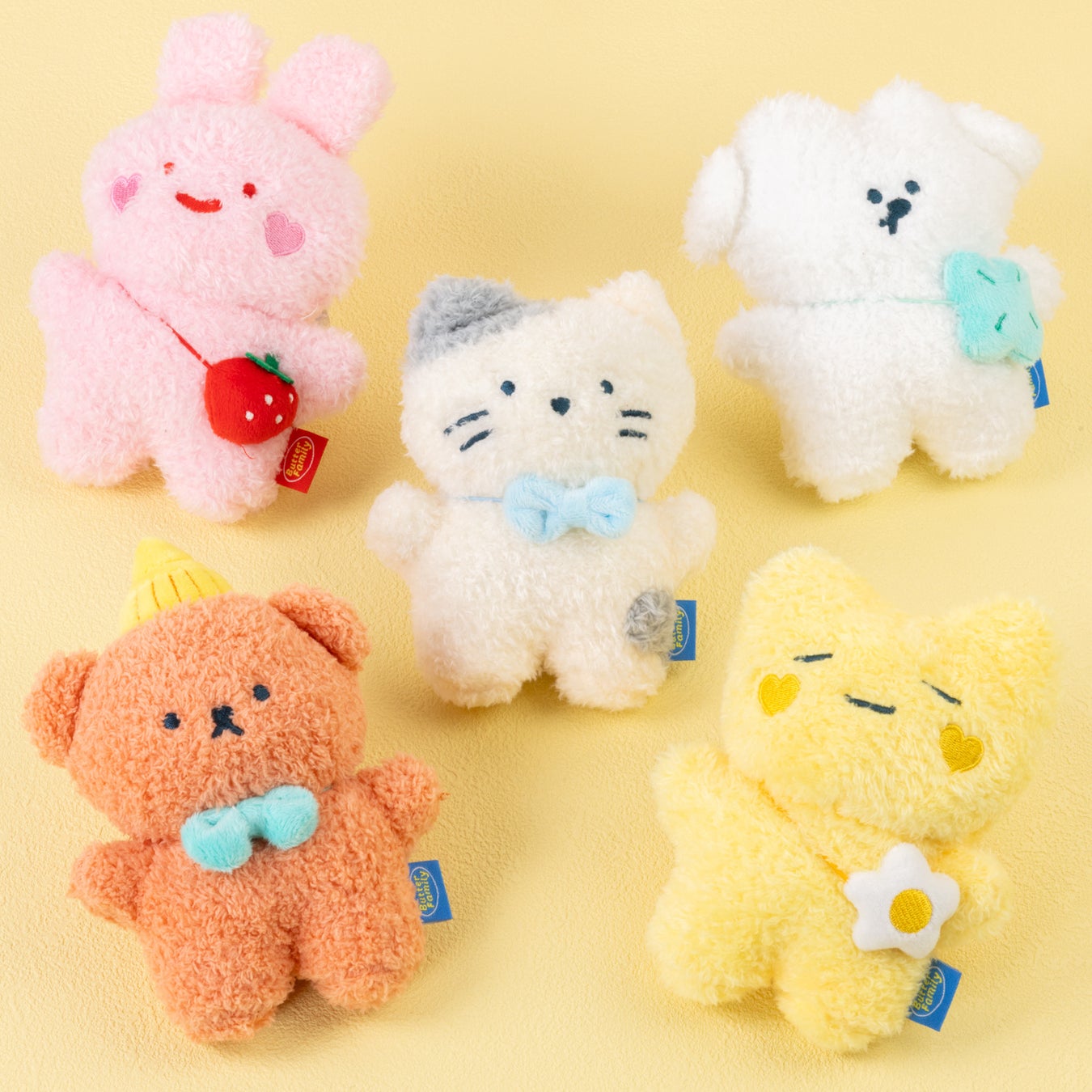 韓国の「BUTTER SHOP」の人気キャラクター「BUTTER FAMILY」は、デザートと動物を組み合わせた独創的な世界観と、思わず抱きしめたくなるようなふわふわのかわいらしさが魅力のキャラクターです。今回のイベントでは、素材感にこだわった「ふわふわ」と、キュートな瞳をあしらった「キラキラ」をテーマにしたアイテムを中心に、フォトカードキーホルダーやポーチ、ぬいぐるみなどさまざまなアイテムをそろえ展開します。