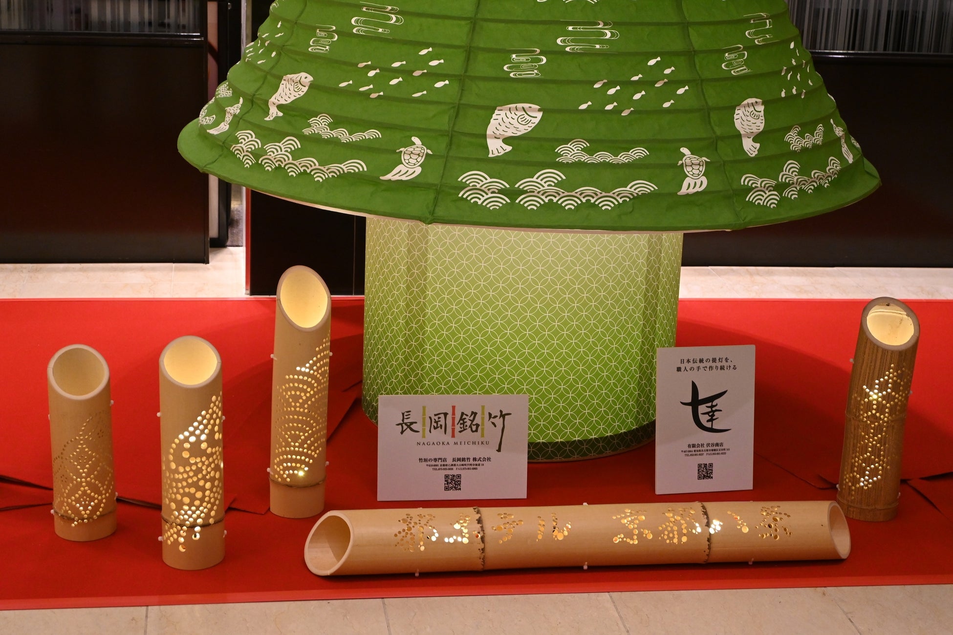 【都ホテル 京都八条】「日本の伝統工芸×ホテル装飾」和紙のちょうちんツリーと京銘竹のクリスマス装飾