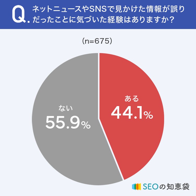 44.1%と半数近くの方が、ネットニュースやSNSで見かけた情報が誤りだったことに気づいた経験が「ある」と回答しています。