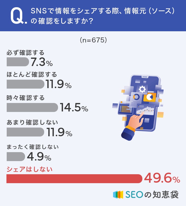 44.9%の方が「確認しない」と回答しており、中には情報元が分からぬままシェアすることもあるようです。