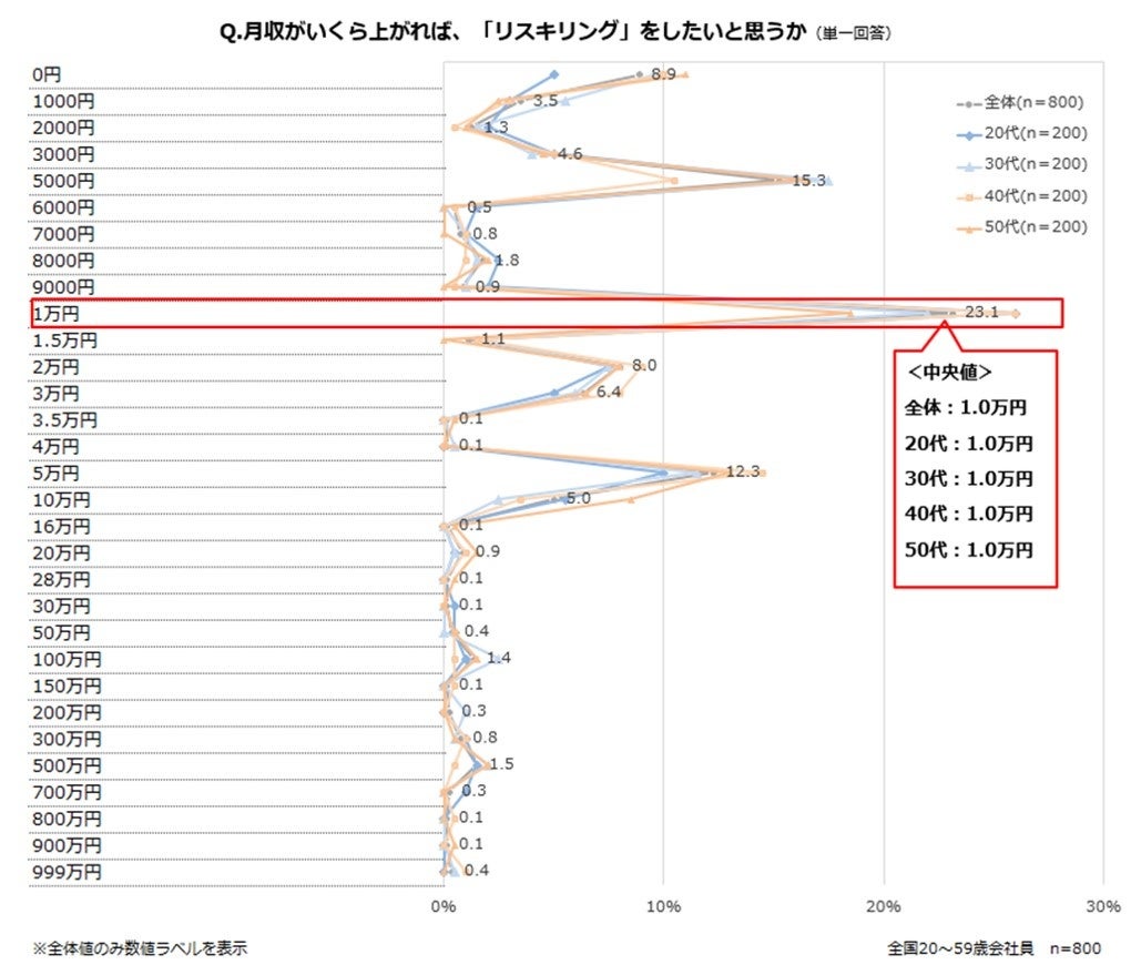 - リスキリングをしたいと思える月収の増額は、中央値で1万円【図8】