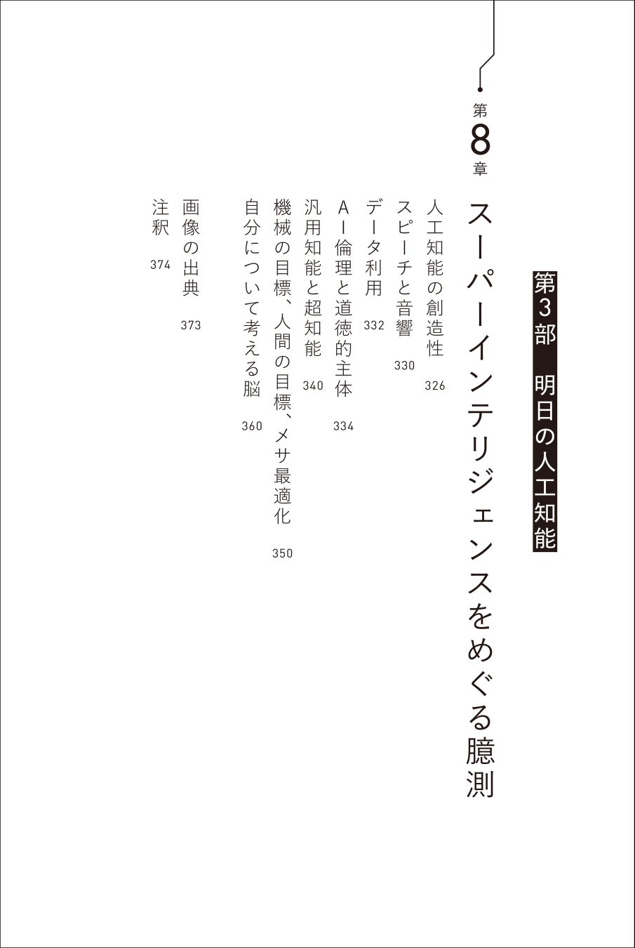 本文は3部構成となっており、まずは人工知能の歴史。次いで人工知能の最先端の現状と、人間が問題解決や意思決定まで機械に任せるとどうなるのかの倫理的、進化論的考察。最後に、創造性、意識、人工知能の未来の問題を論じます。どれも具体的な逸話が豊富で、かつコミカルな口調とテンポのよい解説は秀逸で、人工知能に詳しくない読者でも気軽に読むことができます。