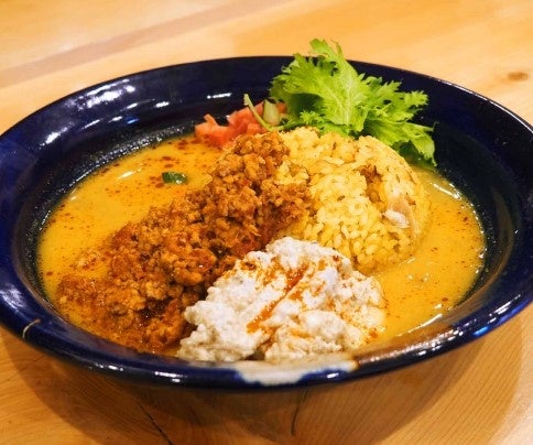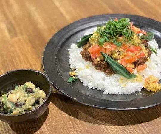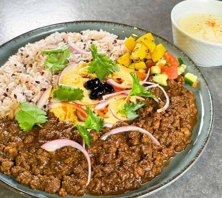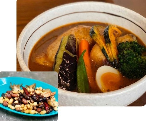 2001年にスタートし、2015年にカレー専門店として現在の店舗に移転。“MARUSE的路地裏アジアをワンプレートに”をテーマにしています。今回のメニューは、お店で人気の台湾をイメージした“辛味の担々キーマ”、豆腐の名店が手掛けた豆乳を使った“やさしい味の豆乳お出汁”、黒豆使用の“酸味とコクの黒豆フムス”を一度にお楽しみいただける内容です。