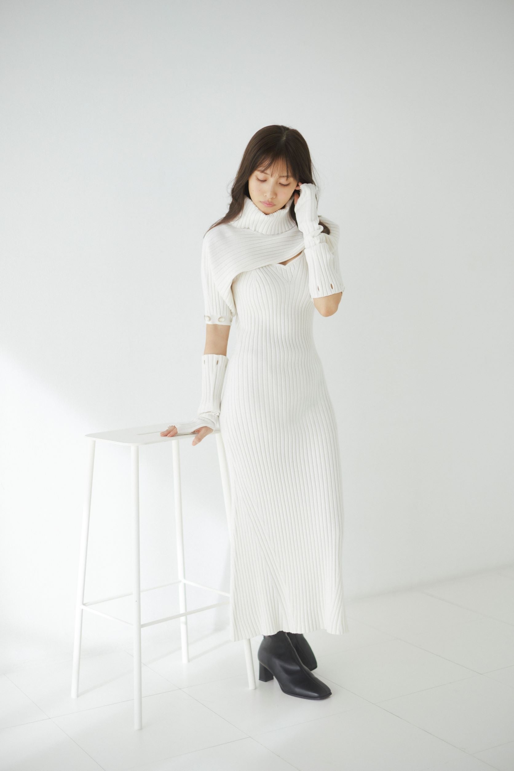 今年らしいミニ丈のニットワンピースと、キャミソールインナーをセットにしたアイテム。