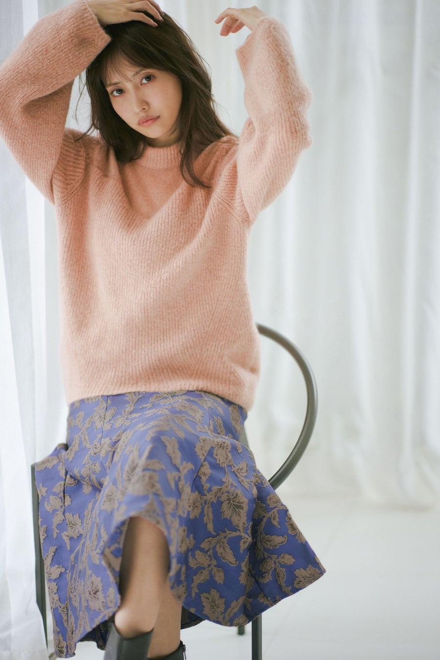 ショルダーデザインが目を引く起毛感のあるニットプルオーバー。
