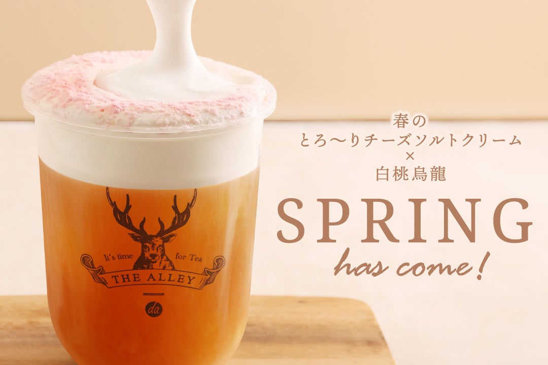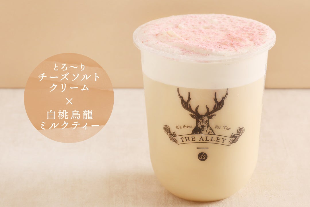 お茶に恋をする本格派ティーストアTHE ALLEYから、爽やかな春の到来!!「チーズソルトクリーム白桃烏龍」と「チーズソルトクリーム白桃烏龍ミルクティー」を3/8より登場致します。