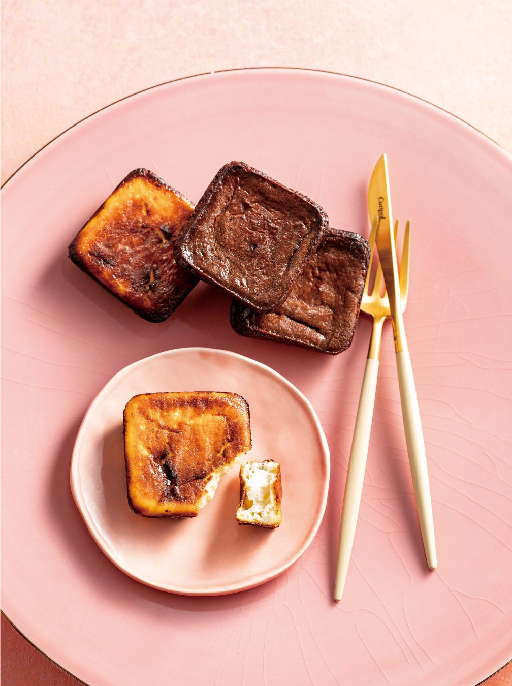 濃厚なデンマーク産のクリームチーズをたっぷり使い、高温・短時間で香ばしく焼きあげた、ベイクドとレア感を両方楽しめる「べーシック」と、チーズ生地にコクのあるチョコレートを練り込んで焼き上あげた、テリーヌのような濃厚食感の「ショコラ」の2種セット。常温で、冷蔵で、半冷蔵で、温めて…と、食べ方のよって表情の異なる濃厚なチーズの深い味わいを感じるチーズケーキです。