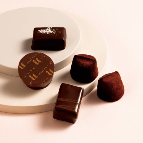 京都 先斗町にあるフランス会席の名店<先斗町 禊川(みそぎがわ)>。オーナーシェフの繊細な味覚バランスから生まれる濃厚で口どけの良いトリュフに、食感豊かなボンボンを合わせて。