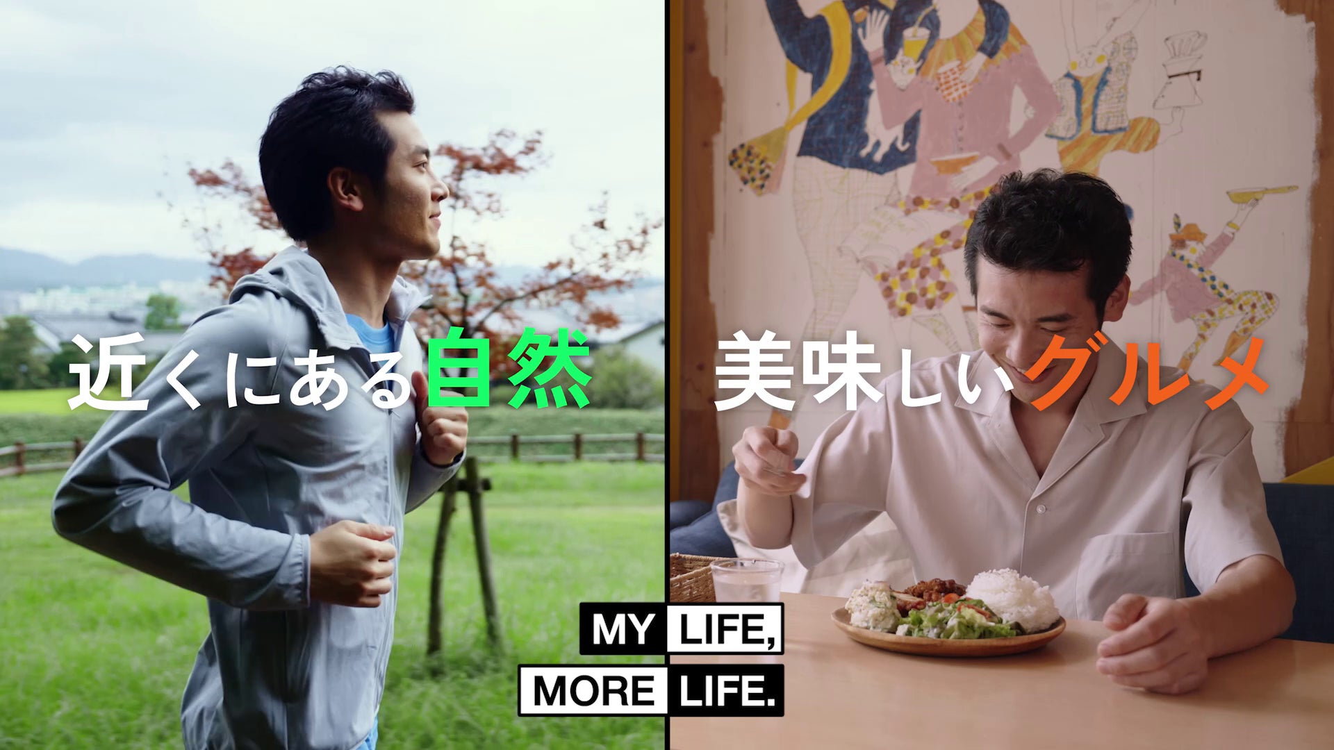 CMの映像では、大阪や京都、東京からのアクセスだけでなく、身近にある自然や美味しいグルメが共存する利便性や快適性を描き、就職や転勤、進学等で関西に移ることになった人へ高槻市が持つ「住む場所」としての優位性を訴求しています。