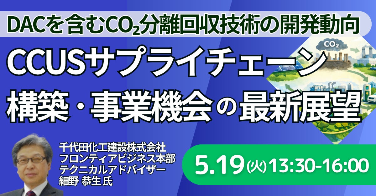 【JPIセミナー】「進展著しいDACを含むCO₂分離回収技術の開発動向とCCUSサプライチェーン構築・事業機会の最新展望」5月19日(火)開催