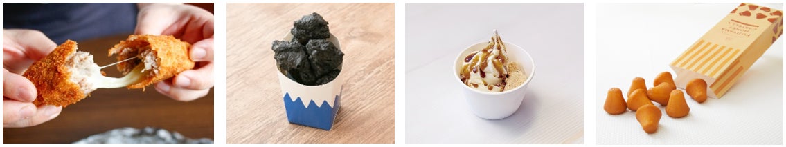 外はサクッ、中からとろーりチーズがたまらない熱々の「チーズメンチカツ」を味わえるテイクアウト店舗のほか、会場内にはキッチンカーが多数出店します。富士山の溶岩をイメージした真っ黒い「富士山溶岩からあげ」や桔梗信玄餅をトッピングした「桔梗信玄餅ソフト」、ハチミツをふんだんに使った富士山型のベビーカステラ「フジヤマハニーカステラ」 など、散策しながら楽しめるグルメが多数登場します。