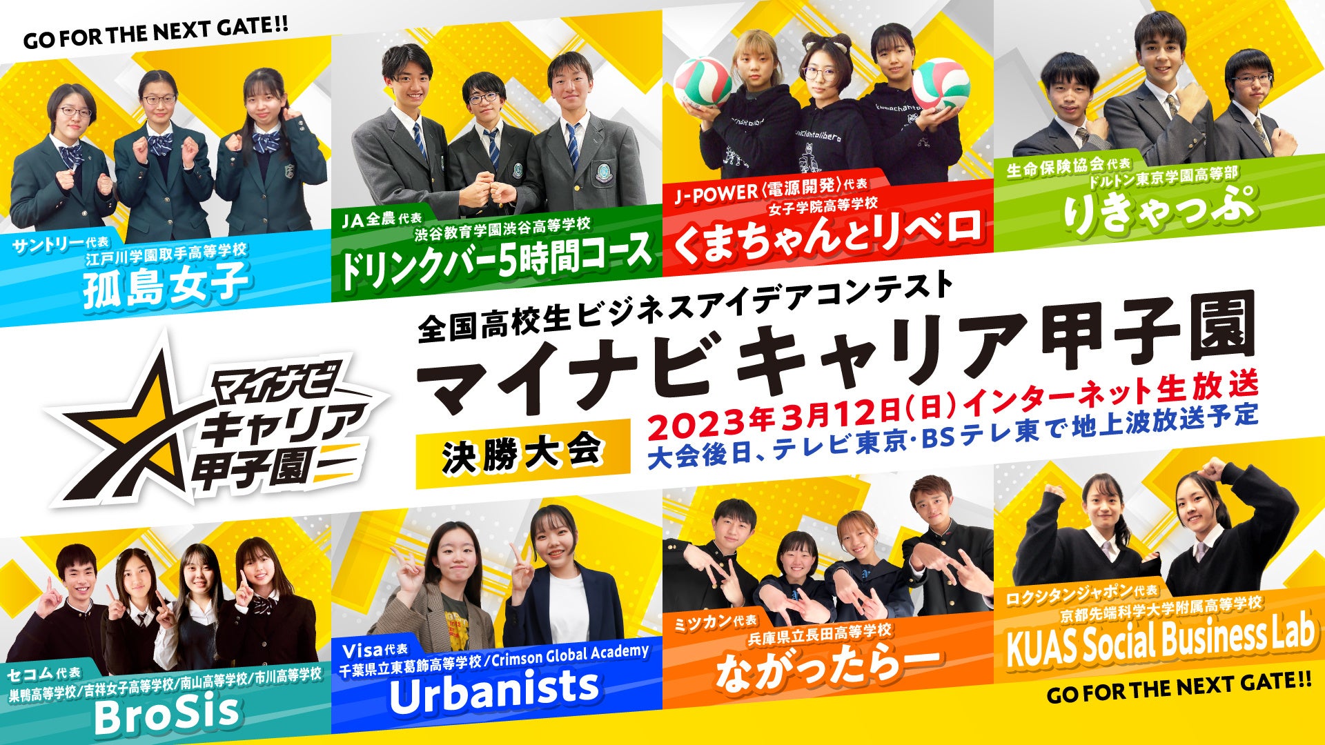 株式会社マイナビ(本社:東京都千代田区、代表取締役 社長執行役員:土屋芳明)は、全国の高校生を対象にした国内最大級のビジネスコンテスト『第9回マイナビキャリア甲子園』の決勝大会を、2023年3月12日(日)に渋谷・SHIBUYA STREAM HALL(ストリームホール)で開催します※。