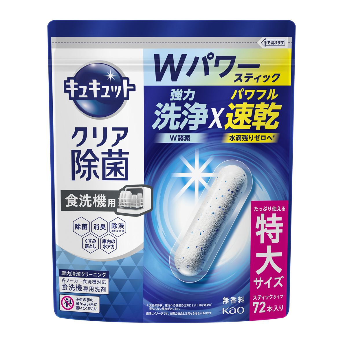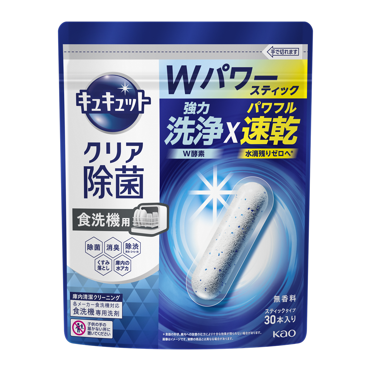 “強力洗浄×パワフル速乾”のWパワーで汚れはもちろん水滴残りゼロへ*1!『食器洗い乾燥機専用 キュキュットクリア除菌 スティックタイプ』 2025年10月4日新発売