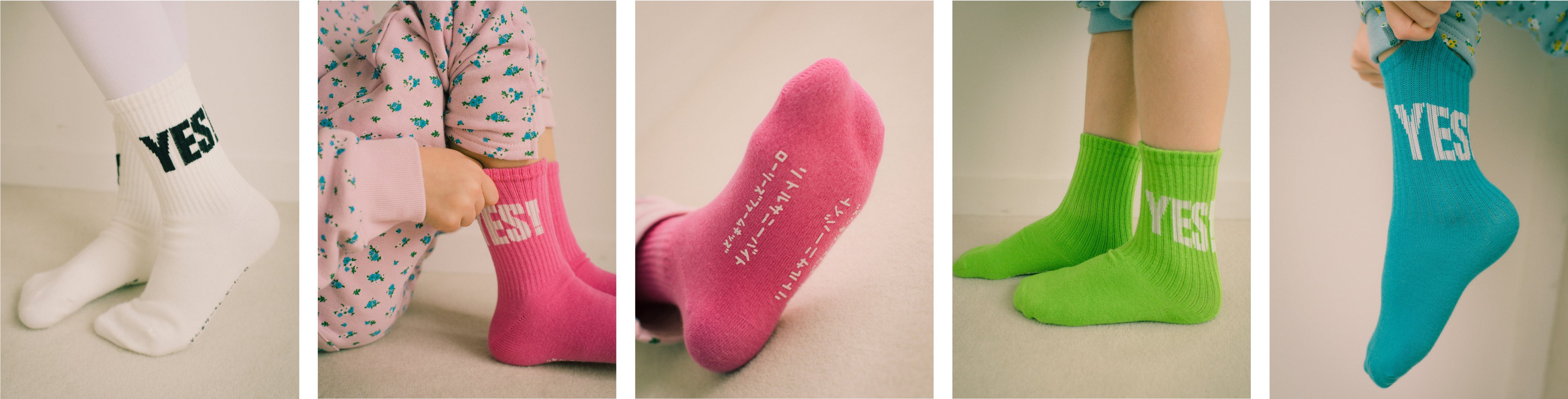 Little Sunny Biteで大人気の「YES!」ソックスをそのままミニサイズに。