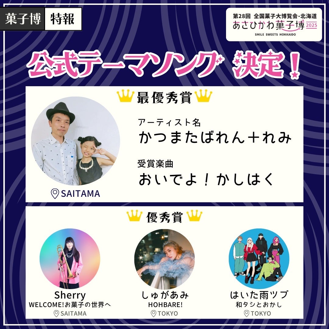 北海道旭川市で開催する国内最大級のお菓子の祭典「あさひかわ菓子博2025」公式テーマソング、「おいでよ!かしはく」に決定!~メディアや会場でイベントを盛り上げます~