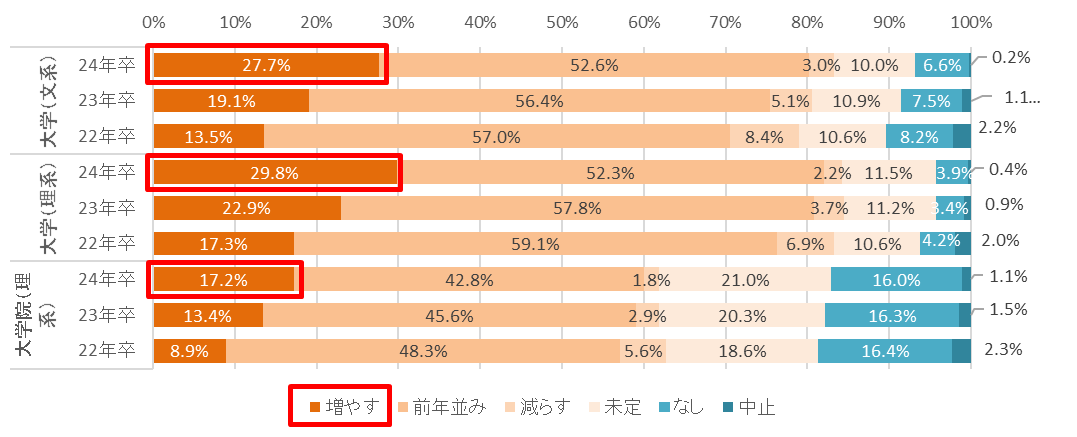 【図3】採用予定数(前年調査との比較)※マイナビ2024年卒 企業新卒採用予定調査より