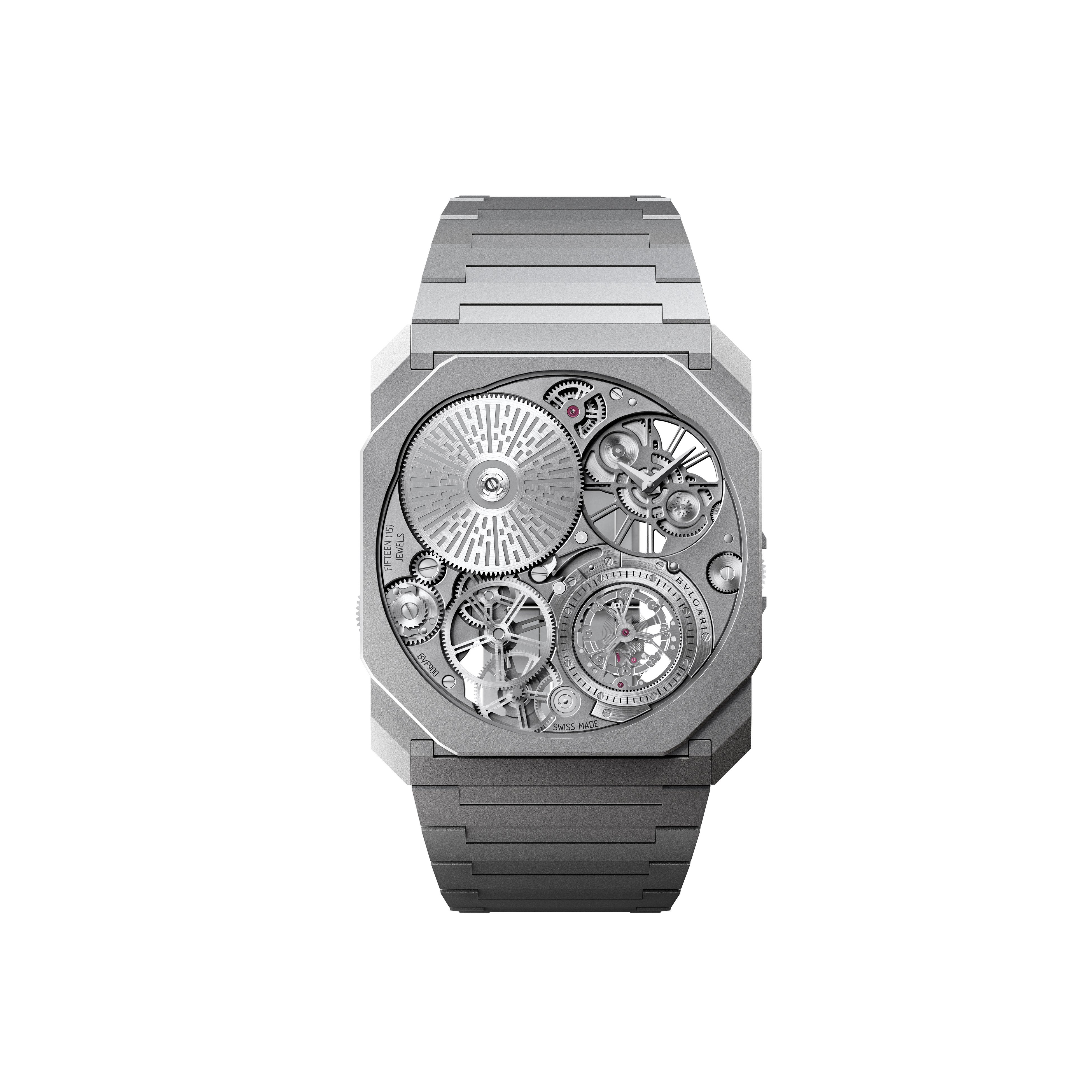 2025年発表の新作「オクト フィニッシモ ウルトラ トゥールビヨン」は、薄さの新記録を樹立しただけではなく、ブルガリのウォッチの姿勢が表されたタイムピースです。わずか1.85mm厚のムーブメントにスケルトントゥールビヨンを組み込むことで、ローマンハイジュエラー、ブルガリのスイス時計部門は、ウォッチメイキングにおける最も象徴的な複雑機構フライングトゥールビヨンの世界最薄ムーブメント開発によって、時計部門が持つ卓越性を証明しました。