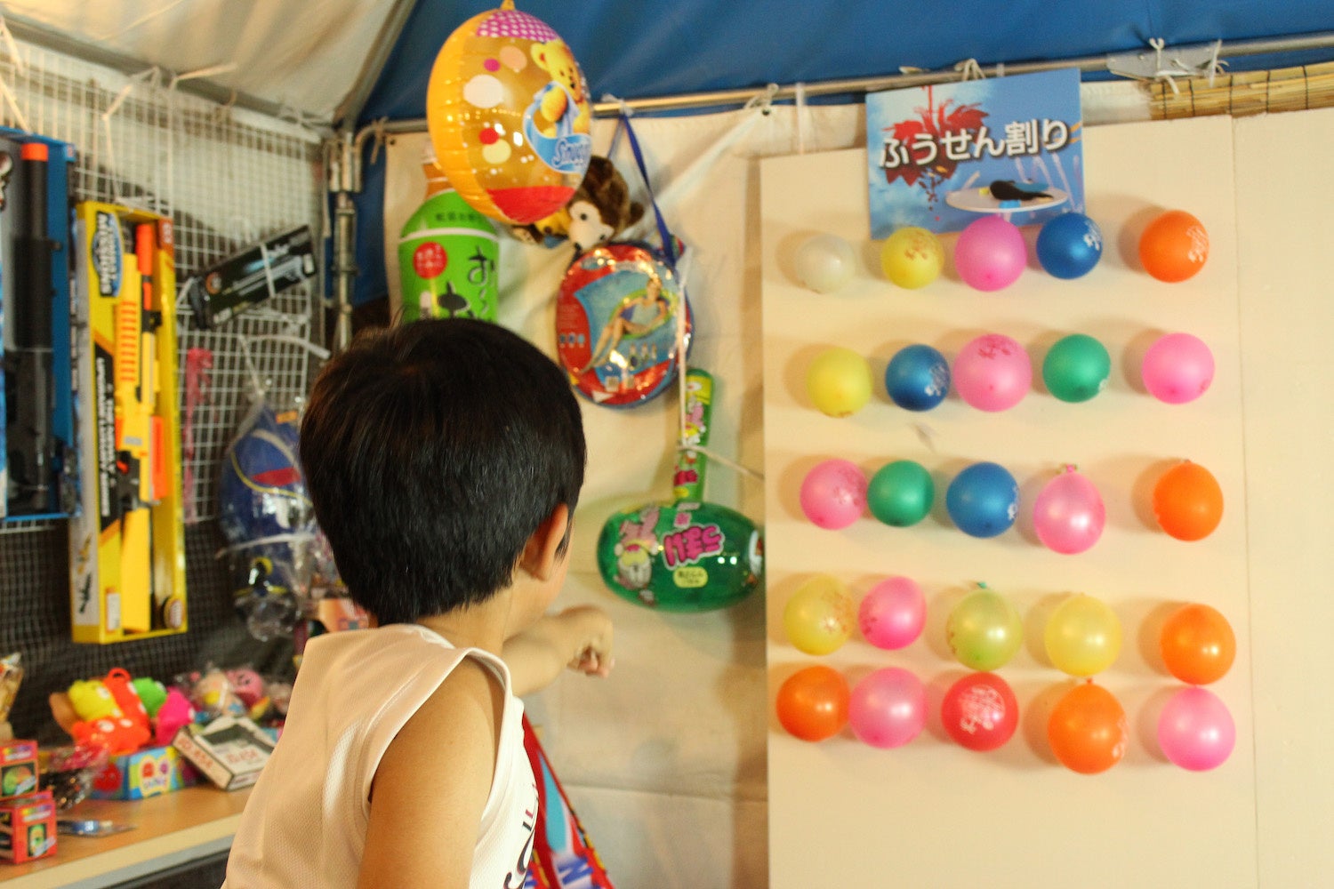 夏にはやっぱり、お祭り!射的やかたぬき、風船ダーツにヨーヨー釣りなど昔懐かしい露店が並びます。 どれもこれもやりたくなるゲームで思いっきり遊べます。