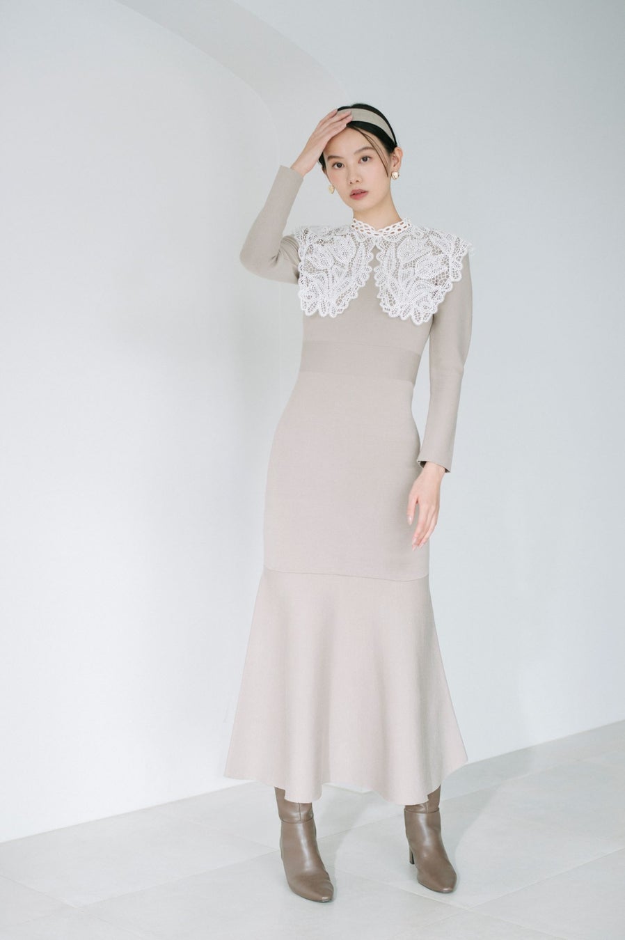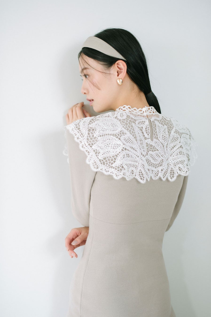 レースカラーは取り外しできるため、シンプルなワンピースとしても着用いただけます。
