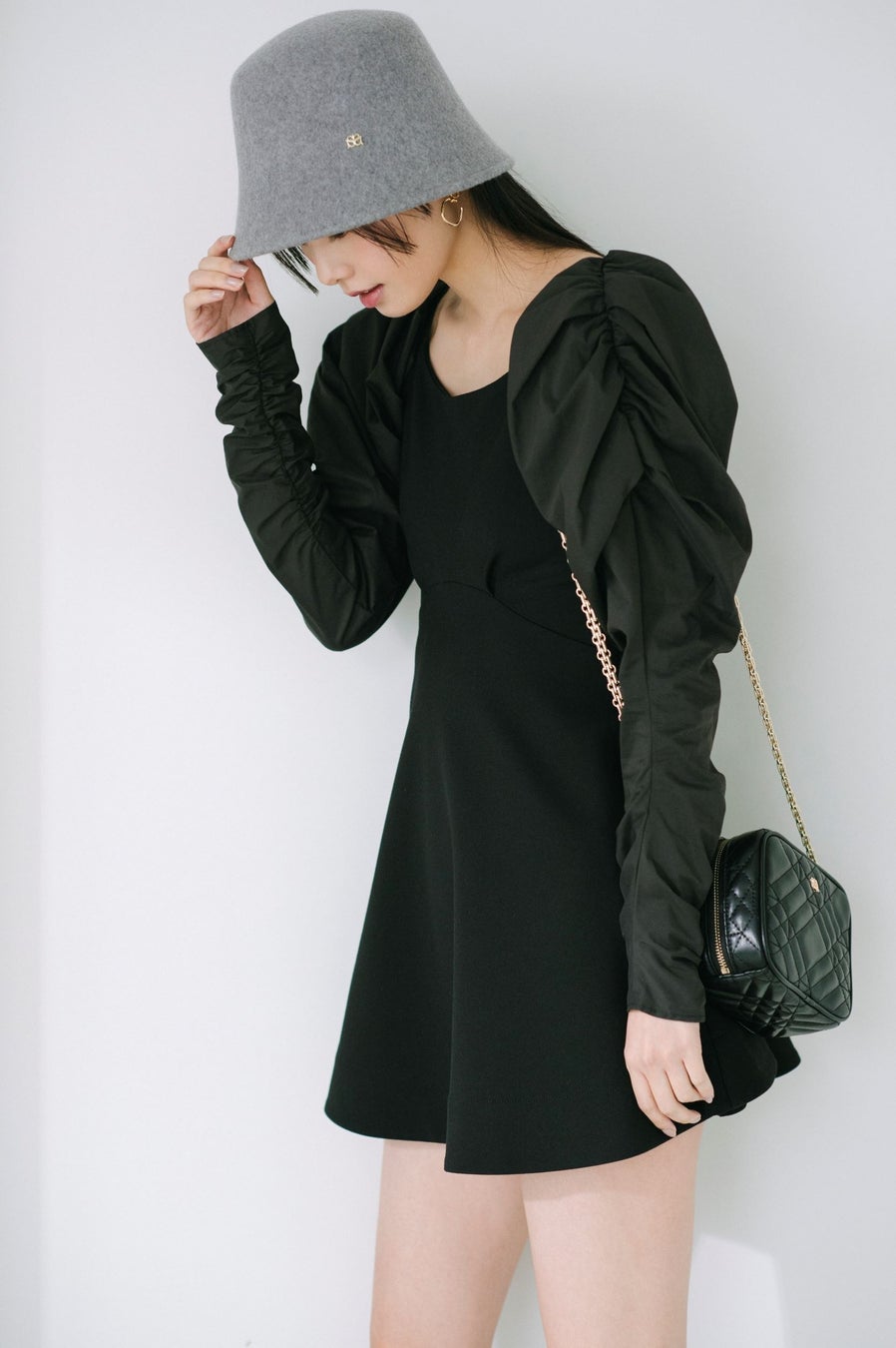 袖にはシャツ地を使用することで立体的なボリュームを出し、ボディラインとのバランスが取れるように細部までこだわりました。