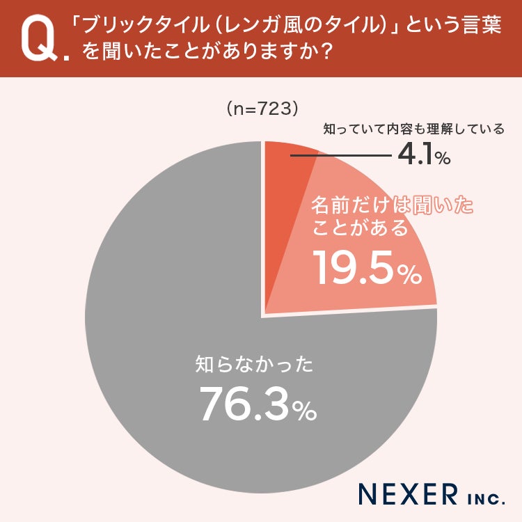 ブリックタイルについて、「知っていて内容も理解している」方は4.1%、「名前だけは聞いたことがある」方は19.5%。そもそもブリックタイルを「知らなかった」方が76.3%と7割以上でした。