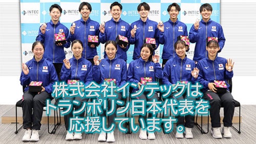 インテックは2019年からトランポリン日本代表のオフィシャルトップスポンサーを務め、選手の演技改善をサポートしています。2023年にAIと画像解析を用いた姿勢推定技術をシステム化し、演技のコーチングに必要な情報を数値化する演技解析システムを構築、ナショナル強化指定選手の練習拠点に設置して、選手の演技改善に活用してきました。